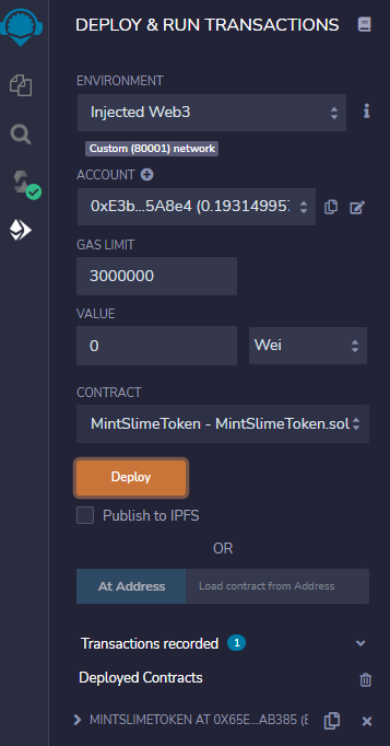 - 폴리곤을 얻었으면 mint 컨트랙트를 Deploy 해준다. 배포를 완료하면 Deployed Contracts에 올라오게 되는데
