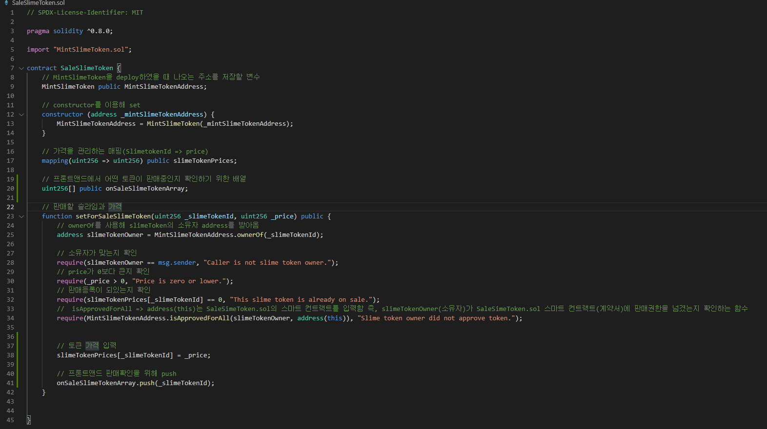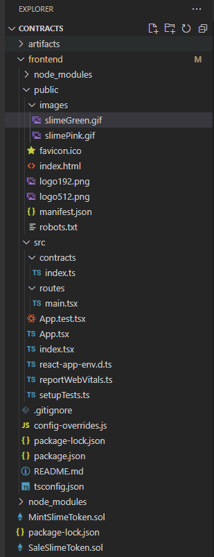 - 이제 메인 페이지를 작성할 것이다. 우선 public 밑에 이미지 디렉토리를 하나 만들어 준다. - App 에서 account를 사용하기위해 - main을 수정해 준다. - mint 버튼을 눌렀을 때 mint를 할 수 있도록 하는 기능을 구현할 것이다. 우선 프론드 기초를 짜고 - 이제 버튼을 onClick을 했을 경우 실행되는 onClickMint 함수를 짜볼 것이다. import React, { FC, useState, } from "react"; import { Box, Text, Flex, Button } from '@chakra-ui/react'; import { mintSlimeTokenContract } from "../web3Config"; // 타입스크립트는 Props의 타입을 모두 ..